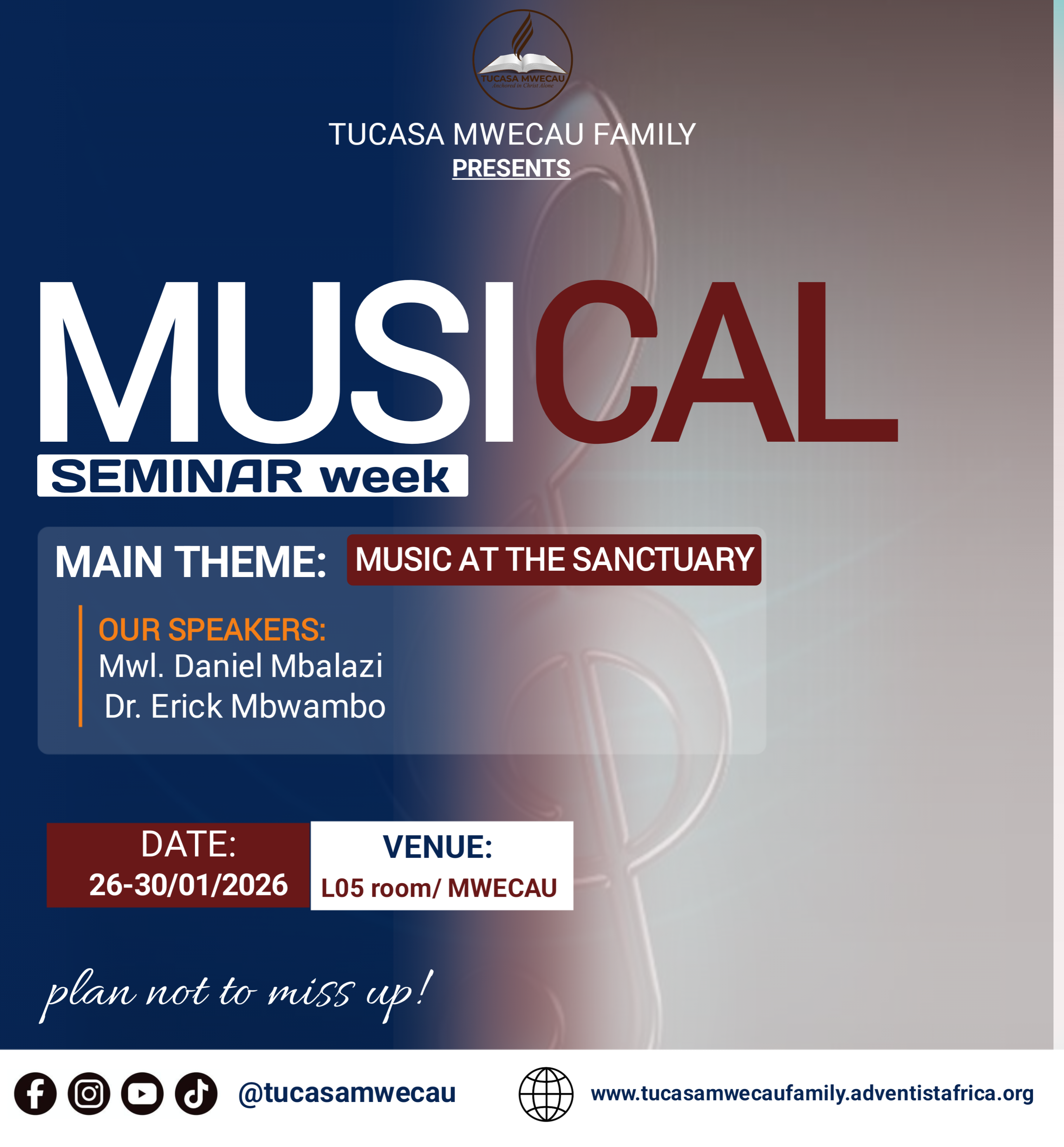 An official website for TUCASA MWECAU FAMILY to share and uphold Seventh-day Adventist beliefs, empowering campus youth to grow spiritually, stand firm in truth, and serve faithfully.